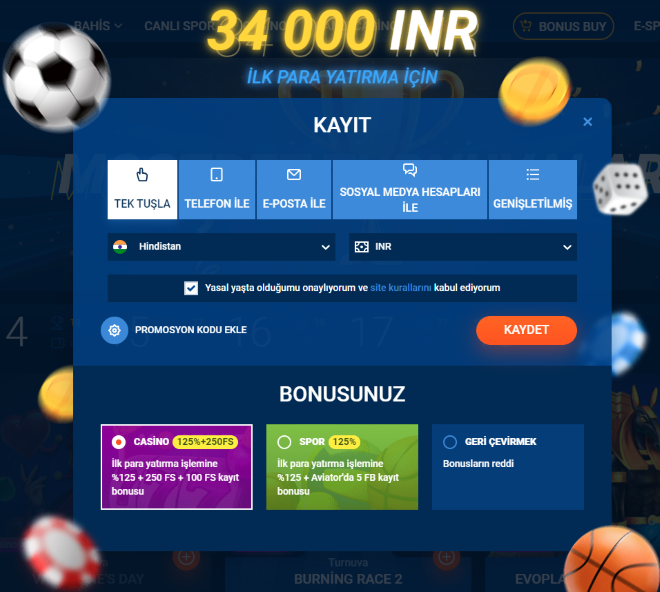| Bonuslar ve promosyonlar | Para yatırma bonusu, freespin, para yatırma bonusu yok, freebets, cashback, tavsiye bonusları, promosyon kodları |